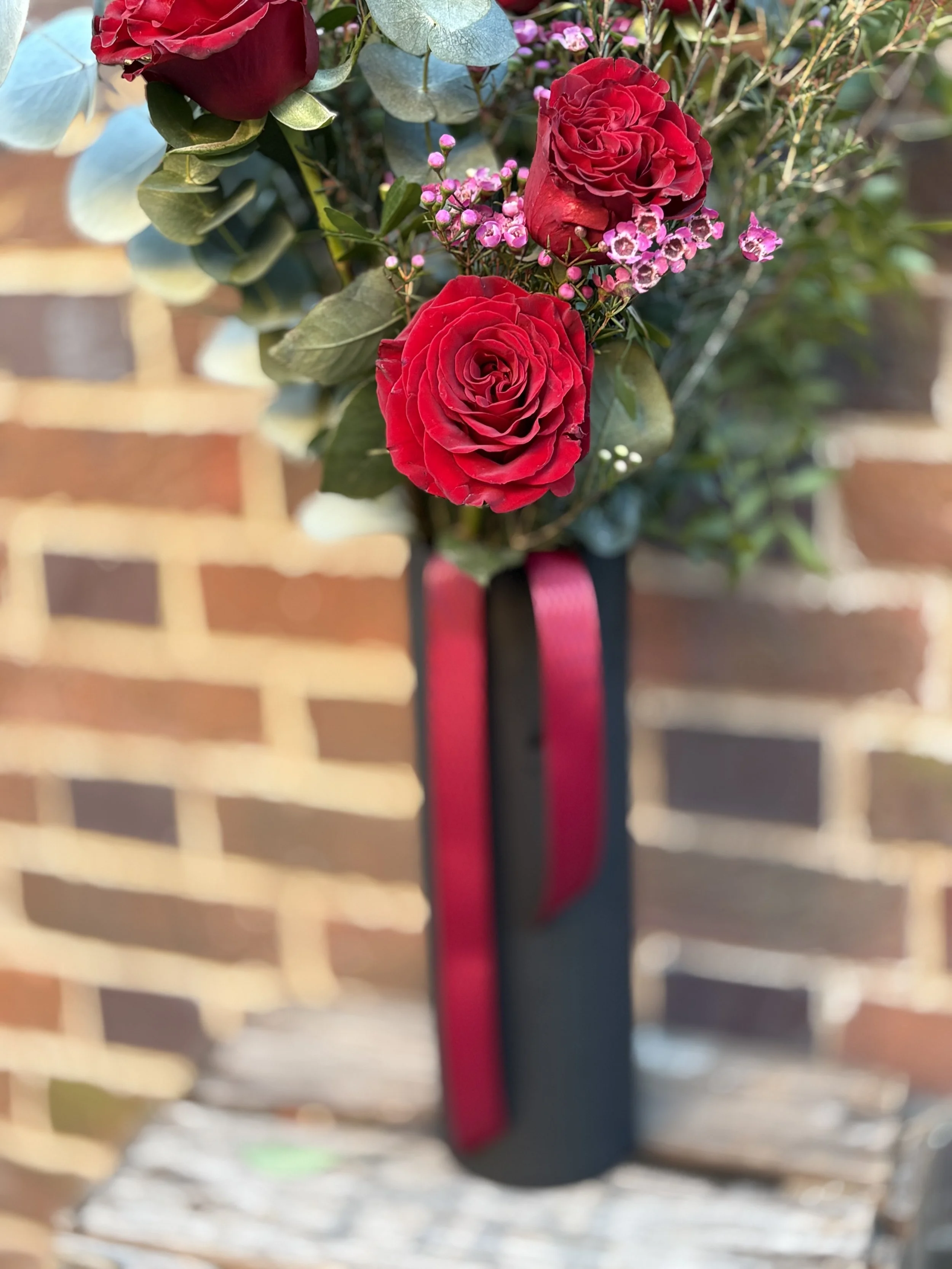 Our Blossom signature Jam jar. Each one will include a luxury rose and romantic filler. Perfect to display on work desks, coffee tables or bed side.